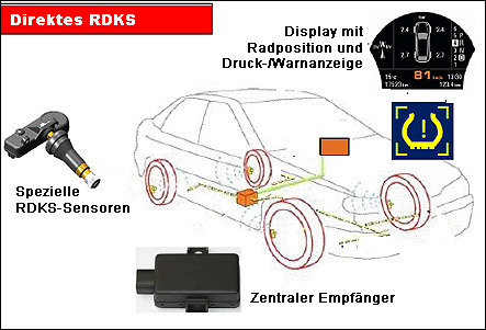 • RDKS ist ein eingebautes Überwachungssystem für den Reifendruck in Kraftfahrzeugen